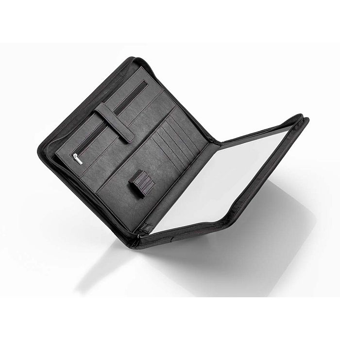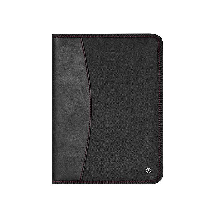 Sold By: Mercedes-Benz StorePerfect for everyday business. The black document folder with red details and silver Mercedes star stud impresses as a mini office for on the road and keeps all important things together in one place. Whilst on the left side of the folder documents, pens, mobile phone, business cards or tablet can be stored, the right side offers space for a DIN A4 block of paper. Thanks to the surrounding zipper, safe storage is guaranteed.
